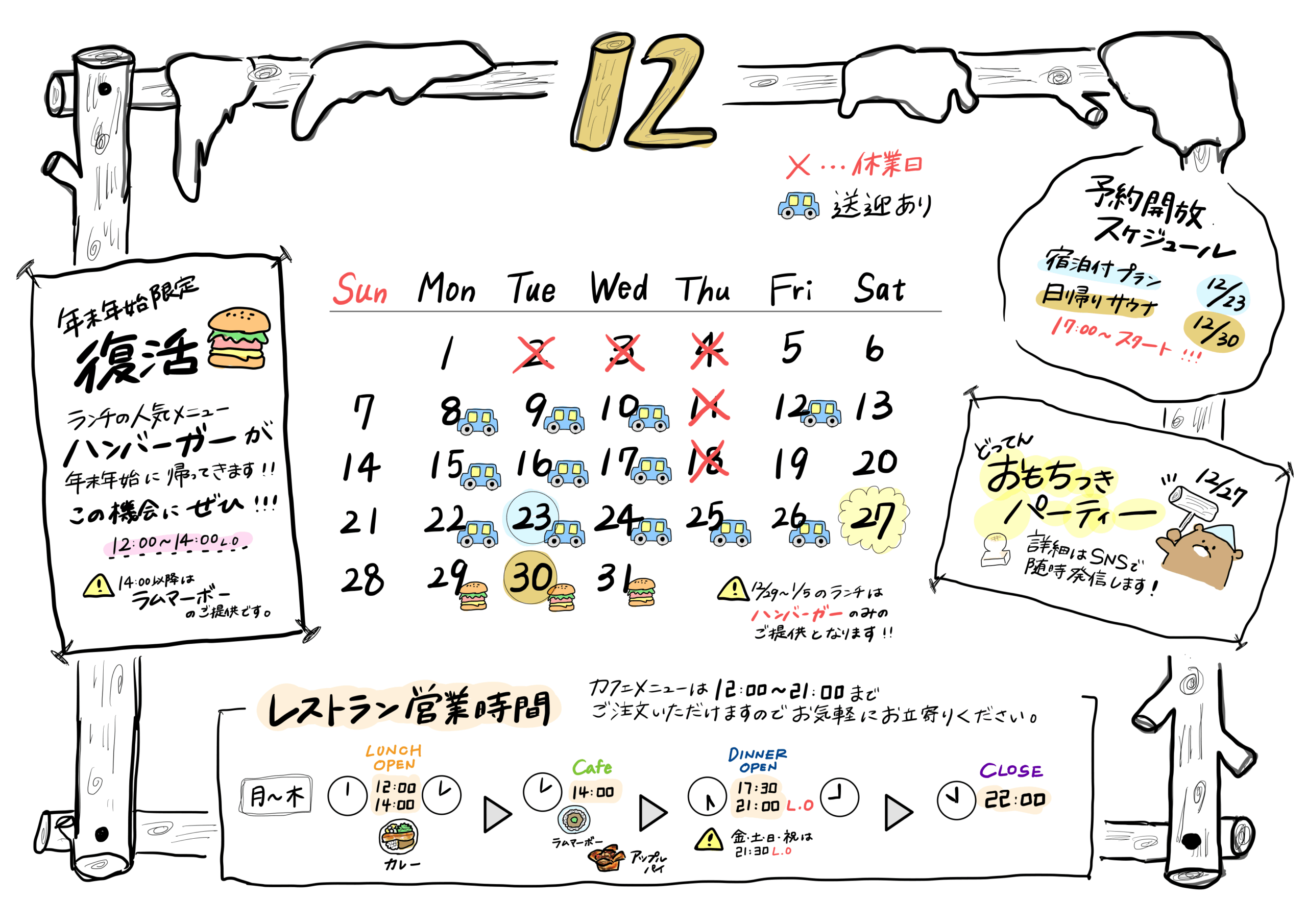 また、雪道の運転に慣れていない場合は、電車とタクシーを利用してお越しくださいませ。